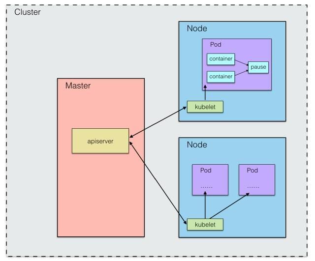 首先,既然是個分布式系統(tǒng),那勢必有多個 Node 節(jié)點(物理主機或虛擬機),它們共同組成一個分布式集群,并且這些節(jié)點中會有一個 Master 節(jié)點,由它來統(tǒng)一管理 Node 節(jié)點。