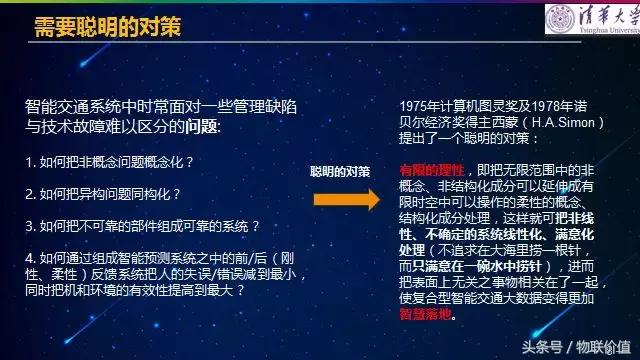 由于這些數(shù)據(jù)的數(shù)據(jù)量大,類型多,智能交通系統(tǒng)時(shí)常需面對(duì)一些管理缺陷與技術(shù)故障難以區(qū)分的問(wèn)題,那基于現(xiàn)在的情況,我們?nèi)绾稳ソ鉀Q? 1975年計(jì)算機(jī)圖靈獎(jiǎng)及1978年諾貝爾經(jīng)濟(jì)獎(jiǎng)得主西蒙(H.A.Simon)提出了一個(gè)聰明的對(duì)策:有限的理性,即把無(wú)限范圍中的非概念、非結(jié)構(gòu)化成分可以延伸成有限時(shí)空中可以操作的柔性的概念、結(jié)構(gòu)化成分處理,這樣就可把非線性、不確定的系統(tǒng)線性化、滿意化處理,進(jìn)而把表面上無(wú)關(guān)之事物相關(guān)在了一起,使復(fù)合型智能交通大數(shù)據(jù)變得更加智慧落地。