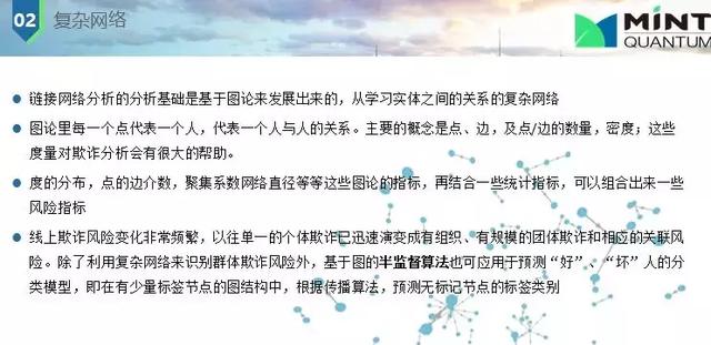 下面是欺詐與未知欺詐甄別問題,主要是監(jiān)督學(xué)習(xí)和非監(jiān)督學(xué)習(xí)。監(jiān)督學(xué)習(xí)是知道一個人以前欺詐(父母信息不對,電話號碼有誤等),我們就會打上標簽,歷史數(shù)據(jù)就會訓(xùn)練我們的模型,統(tǒng)計模型所用數(shù)據(jù)大都都是有標簽的;非監(jiān)督學(xué)習(xí)也是經(jīng)常使用的,因為欺詐是經(jīng)常改變的或不同特征的,我并不知道他是否是欺詐,我們用關(guān)聯(lián)網(wǎng)絡(luò),每個人間有聯(lián)系,這種網(wǎng)絡(luò)快速發(fā)展;還有一種是兩者結(jié)合起來,利用權(quán)重評估。