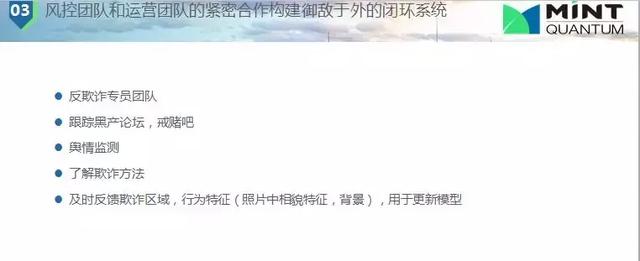 閉環(huán)系統(tǒng)也就是打標簽,比如我們公司就有專門的反欺詐的專員不僅對已有的客戶,也會追蹤一些論團、微信群或者黑產(chǎn)群、戒賭吧,了解他們的動態(tài),搜集數(shù)據(jù),這些會反饋在我們的模型上。及時獲取最新欺詐手段或技術(shù)非常重要。