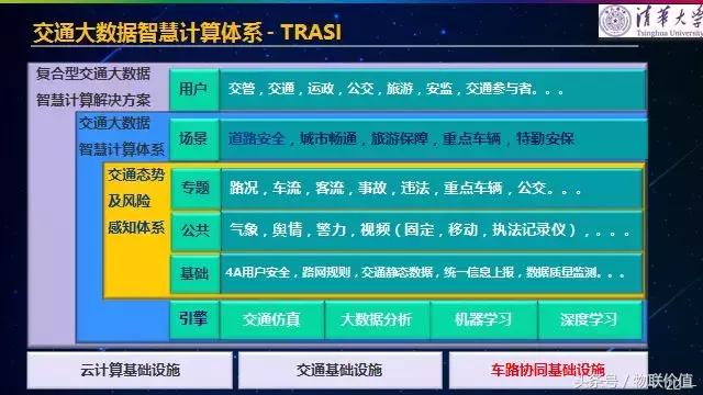 我們針對(duì)交通場(chǎng)景建構(gòu)了一套計(jì)算體系,即交通大數(shù)據(jù)智慧的體系。這里面涵蓋了用戶、場(chǎng)景、專題、公共、基礎(chǔ)和引擎。在引擎上,我們應(yīng)用了交通仿真技術(shù),用于道路指導(dǎo)和道路建設(shè),可以清晰的輔助分析預(yù)測(cè)交通堵塞的地段和原因。通過(guò)交通仿真、大數(shù)據(jù)分析、機(jī)器學(xué)習(xí)、深度學(xué)習(xí)等技術(shù),每個(gè)引擎發(fā)揮著特定的效用。