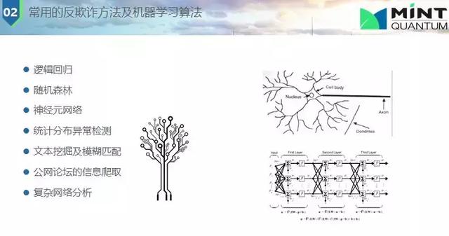 下面是反欺詐常用算法,比如邏輯回歸,并不是就不用了,因為它的解釋性非常好。機器學(xué)習(xí)很多時候是黑盒子,中間過程無法獲取,而銀行很少用機器學(xué)習(xí)的方法,因為監(jiān)管就無法通過(比如它要了解你的資產(chǎn)質(zhì)量,但是它連你怎么評估都不清楚,它不會認可你的結(jié)果),因此很多大銀行都會用邏輯回歸。而機器學(xué)習(xí)存在過擬合現(xiàn)象,很難匹配一個度。因此在風控行業(yè)經(jīng)驗非常重要,有一句老話講“風控是技術(shù)和藝術(shù)的結(jié)合”,這絕對不是純技術(shù)問題,單純靠技術(shù)是會存在風險的。