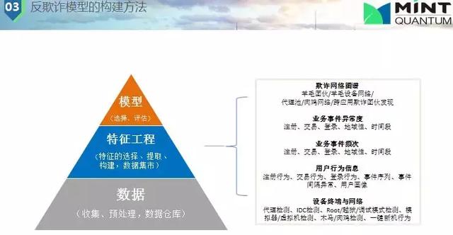 我們常用的一些反欺詐的數(shù)據(jù)和方法有:(1)身份驗證,這個是非常重要的,身份驗證在中國很偉大,如中國解決了第三方欺詐的問題。因為中國手機實名認證,有些時候你很難去做假,這樣我們可以交叉驗證,這樣就提高了欺詐的成本;(2)法院/征信信息,內(nèi)部黑名單,有公司會專門整理這些信息,可以公開給我們使用。用戶信息整合,通過各公司間信息碰撞,規(guī)則匹配,如果發(fā)現(xiàn)過去欺詐行為就不給他提供金融服務(wù);(3)模型,評估用戶行為,進行規(guī)則評判他這種行為是不是欺詐,如何減少錯殺準確抓住欺詐人員。